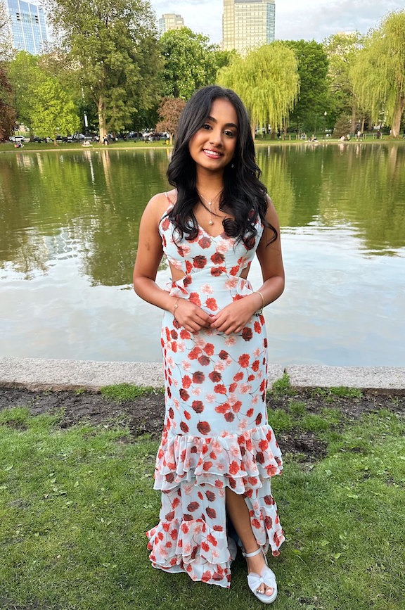 SIMPLISTIC FLORALS IN BLUE/ORANGE FLORAL - CUTOUT OPEN BACK FLORAL DRESS